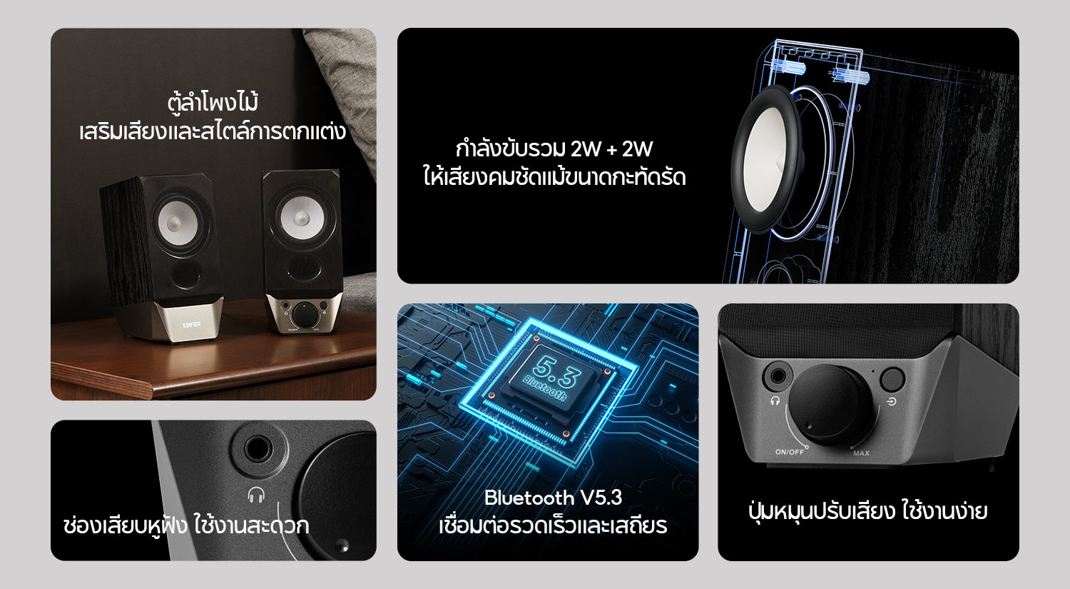 Designed with a perfect angle, the sound is transmitted directly to the ear, reducing the spread of sound to the surrounding area. Suitable for placing on a desk or using in close proximity.