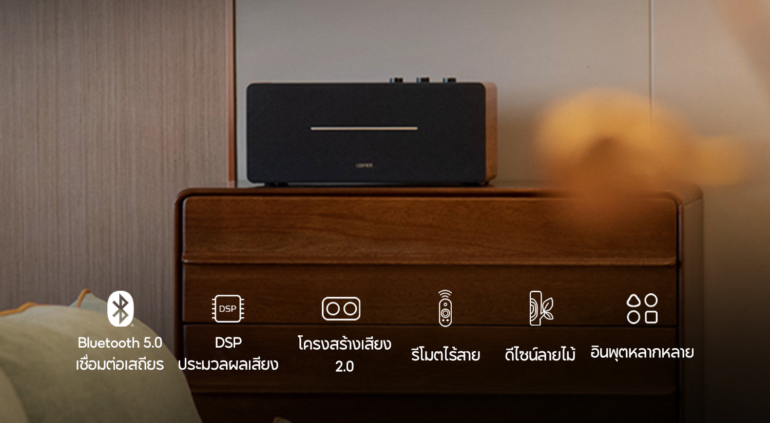 ไม่ว่าจะวางไว้ที่โต๊ะทำงาน ห้องนั่งเล่น ห้องนอน หรือหอพัก ลำโพงรุ่นนี้ให้เสียงไร้สายที่ชัดเจน สมดุล และเต็มอิ่ม เหมาะกับทุกมุมที่คุณอยากผ่อนคลาย