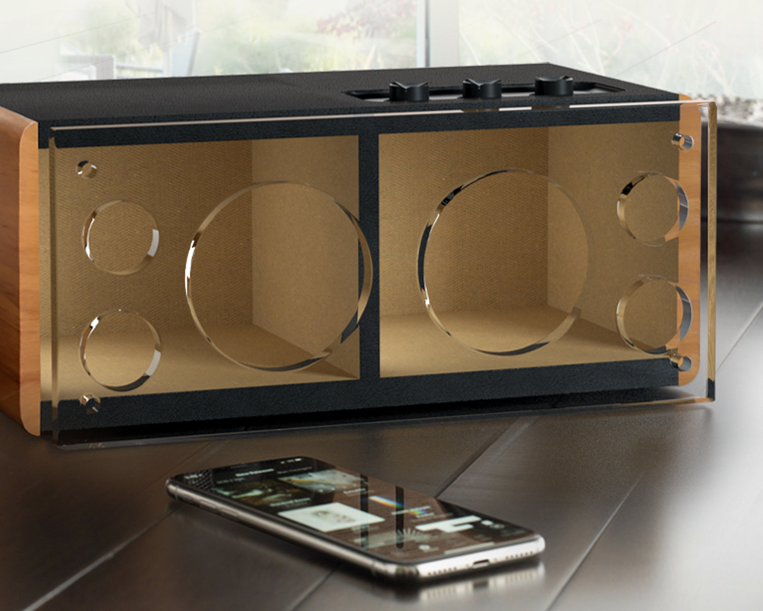 ลำโพงใช้แพลตฟอร์มดิจิทัลแบบรวมศูนย์ที่มีทั้งวงจรควบคุมหลัก Bluetooth และภาคขยายเสียงดิจิทัล 2 ชุด ทำงานร่วมกันอย่างมีประสิทธิภาพเพื่อขับเคลื่อนยูนิตเสียงทั้ง 4 ตัวให้เต็มพลัง