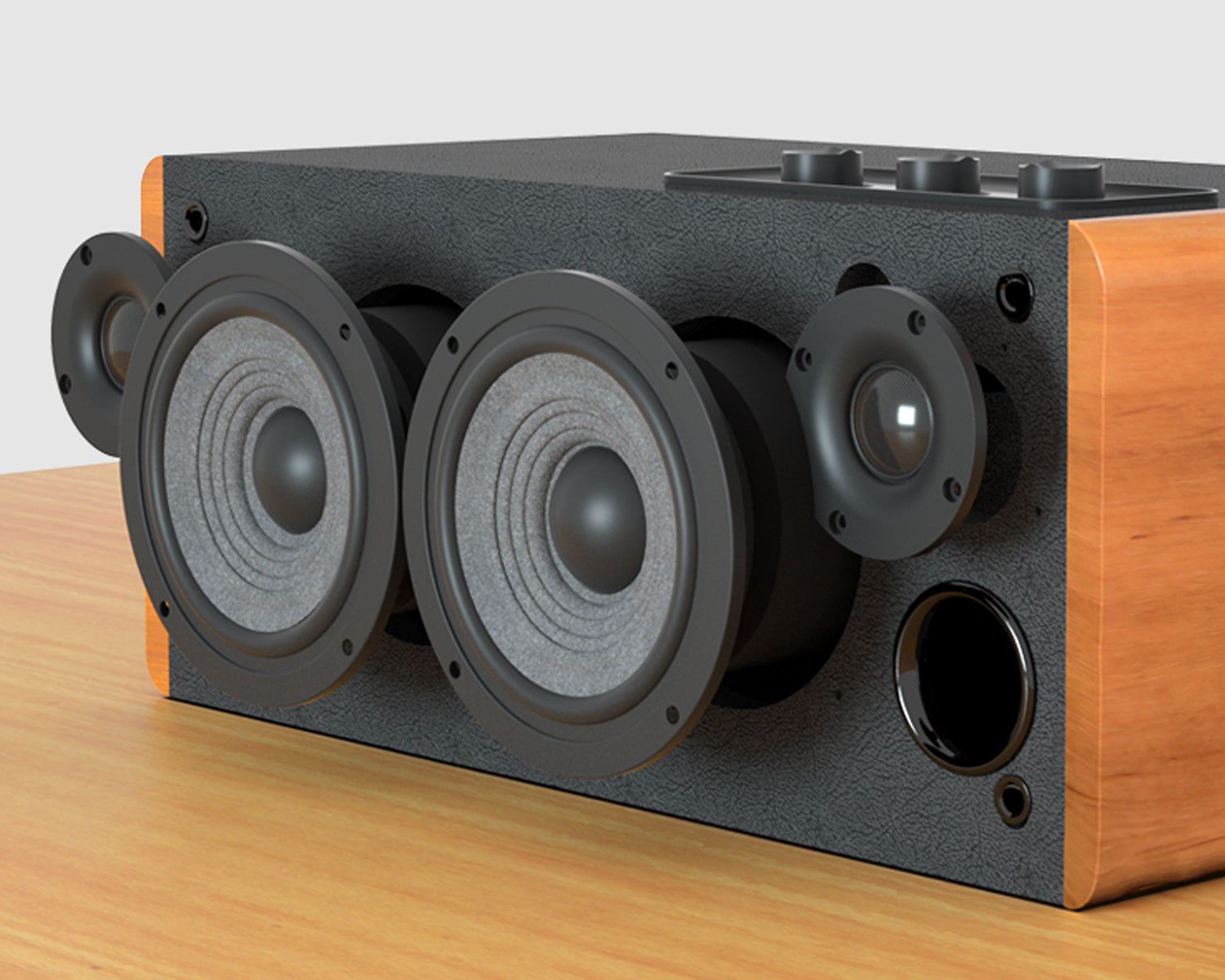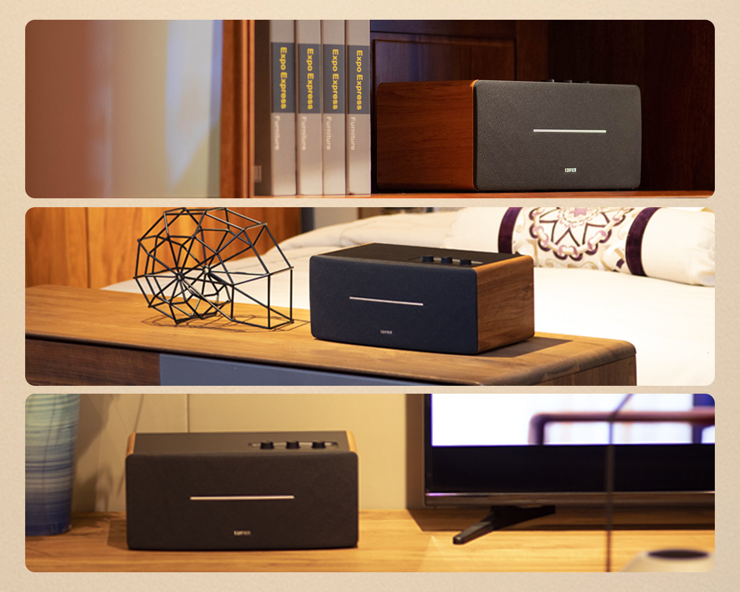 ลำโพงมาพร้อมดีไซน์มินิมอลที่ให้ความรู้สึกเรียบหรู ผิวไม้ภายนอก ผิวสัมผัสลายหนัง ตะแกรงสีดำ และขอบสีเงิน ช่วยเสริมบรรยากาศให้เข้ากับบ้านทุกแบบได้อย่างลงตัว