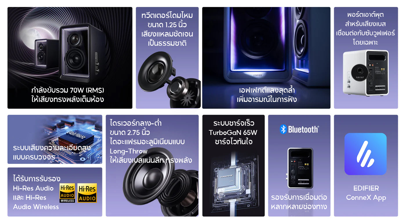- 【เสียงคมชัดระดับสตูดิโอ】: กำลังขับรวม 70W (RMS) พร้อมทวีตเตอร์โดมไหม 1.25 นิ้ว และวูฟเฟอร์อะลูมิเนียม 2.75 นิ้ว ให้รายละเอียดเสียงครบทุกย่าน