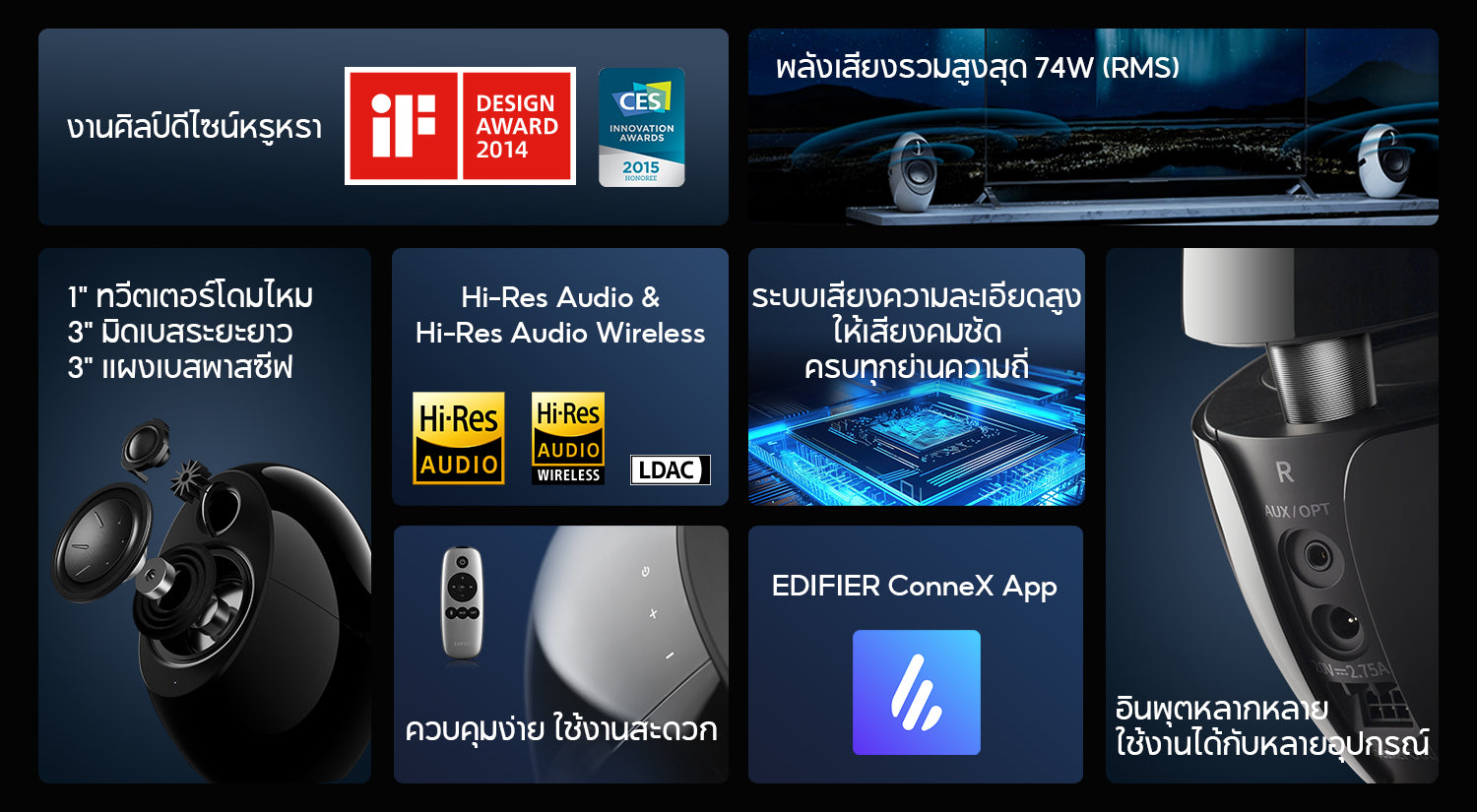 รองรับการควบคุมผ่าน EDIFIER ConneX (มือถือ) และ TempoHub (คอมพิวเตอร์)