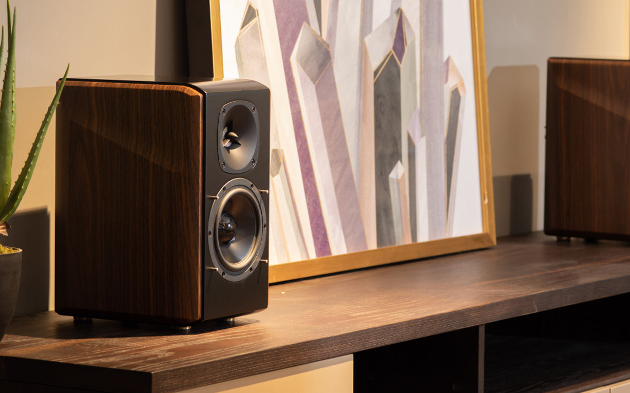 ตัวลำโพงเคลือบด้าน พร้อมแผงข้างลายไม้วอลนัต สะท้อนความหรูหราแบบ Hi-Fi คลาสสิก