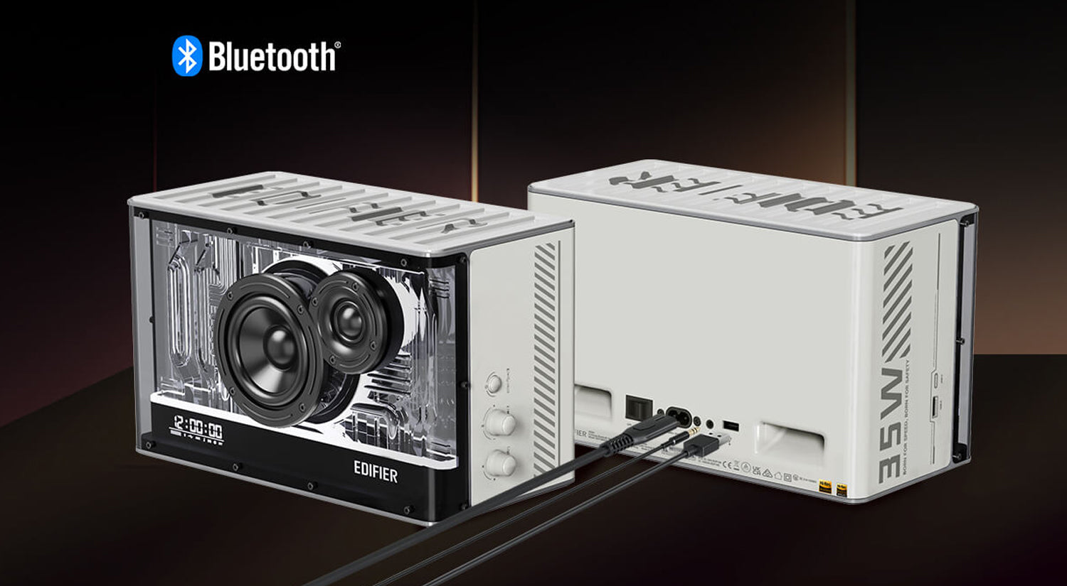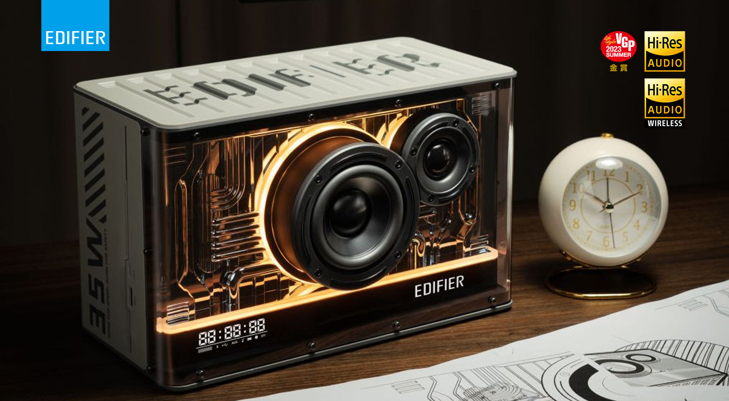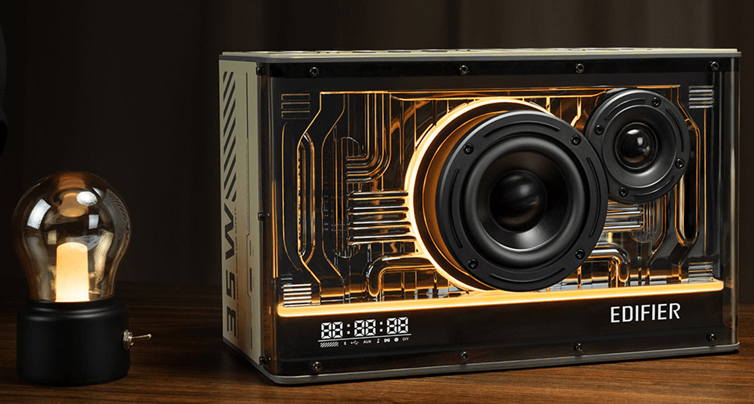 - 【ดีไซน์ล้ำพร้อม Mood Light และหน้าจอแสดงเวลา】: เปลี่ยนสีไฟและปรับความสว่างได้ผ่านปุ่มหมุนด้านหน้า หรือผ่านแอป Edifier Connect พร้อมหน้าจอ LED แสดงเวลาจริงบนตัวเครื่อง