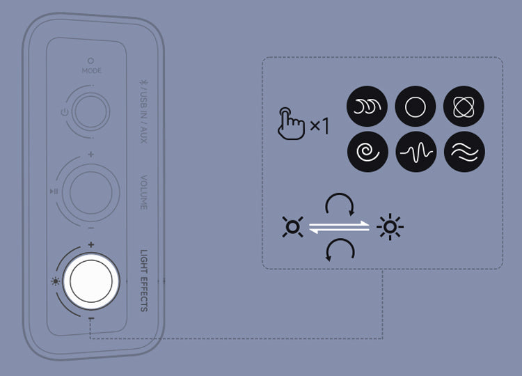 • เปลี่ยนเอฟเฟกต์: กดปุ่มเพื่อสลับโหมดไฟ
