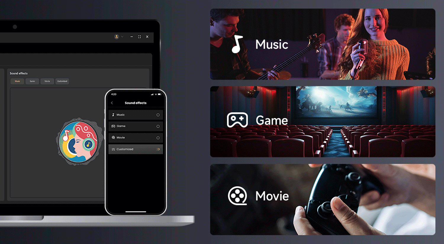 มีให้เลือก 3 โหมดเสียง ได้แก่ เพลง ภาพยนตร์ และเกม หรือปรับแต่งเองผ่านแอป EDIFIER ConneX และ TempoHub