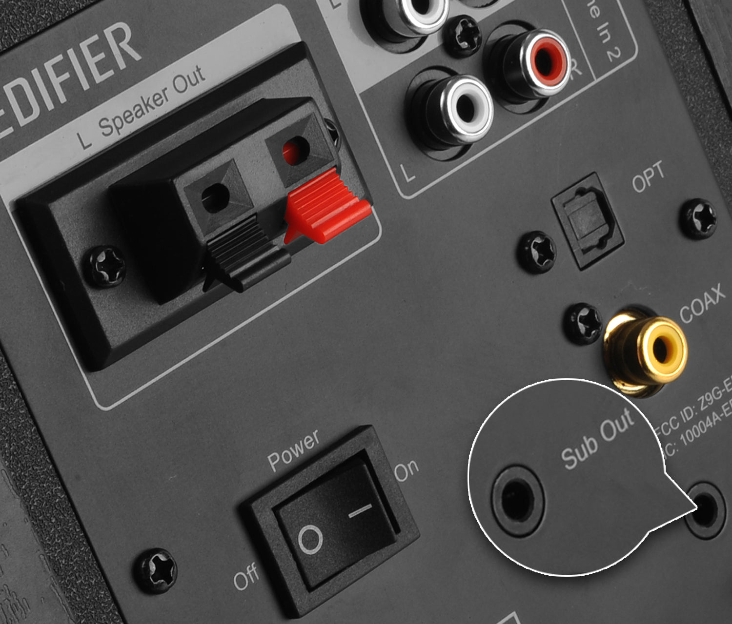 รองรับการเชื่อมต่อผ่าน Line In, Coaxial และ Optical พร้อมช่อง Sub Out สำหรับต่อซับวูฟเฟอร์ เพิ่มพลังเบสเพื่อประสบการณ์เสียงแบบ 2.1