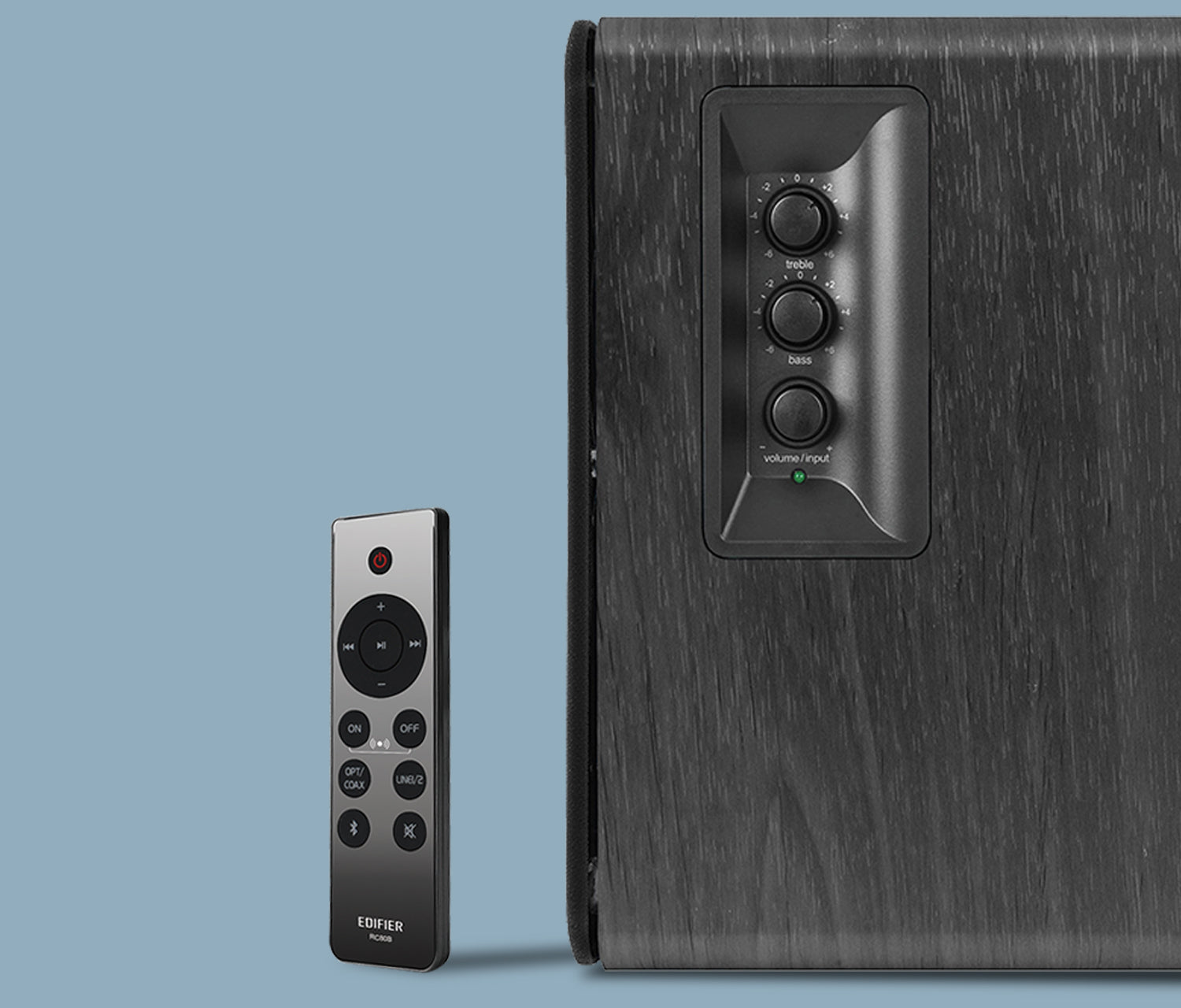 - 【ควบคุมง่ายด้วยปุ่มและรีโมต】: ปรับระดับเสียง อินพุต และ EQ ได้จากปุ่มด้านข้าง พร้อมควบคุมระยะไกลด้วยรีโมต