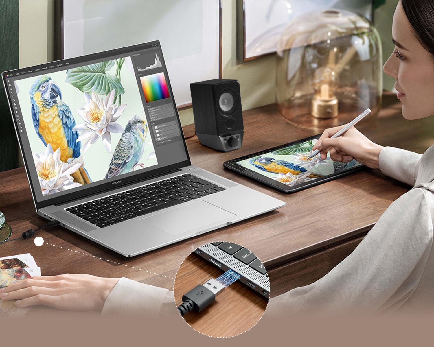 เพียงเสียบสาย USB ก็สามารถใช้งานได้ทันที ไม่ต้องติดตั้งไดรเวอร์หรือใช้สายหลายเส้น ช่วยให้โต๊ะทำงานของคุณเป็นระเบียบและใช้งานได้อย่างมีประสิทธิภาพ