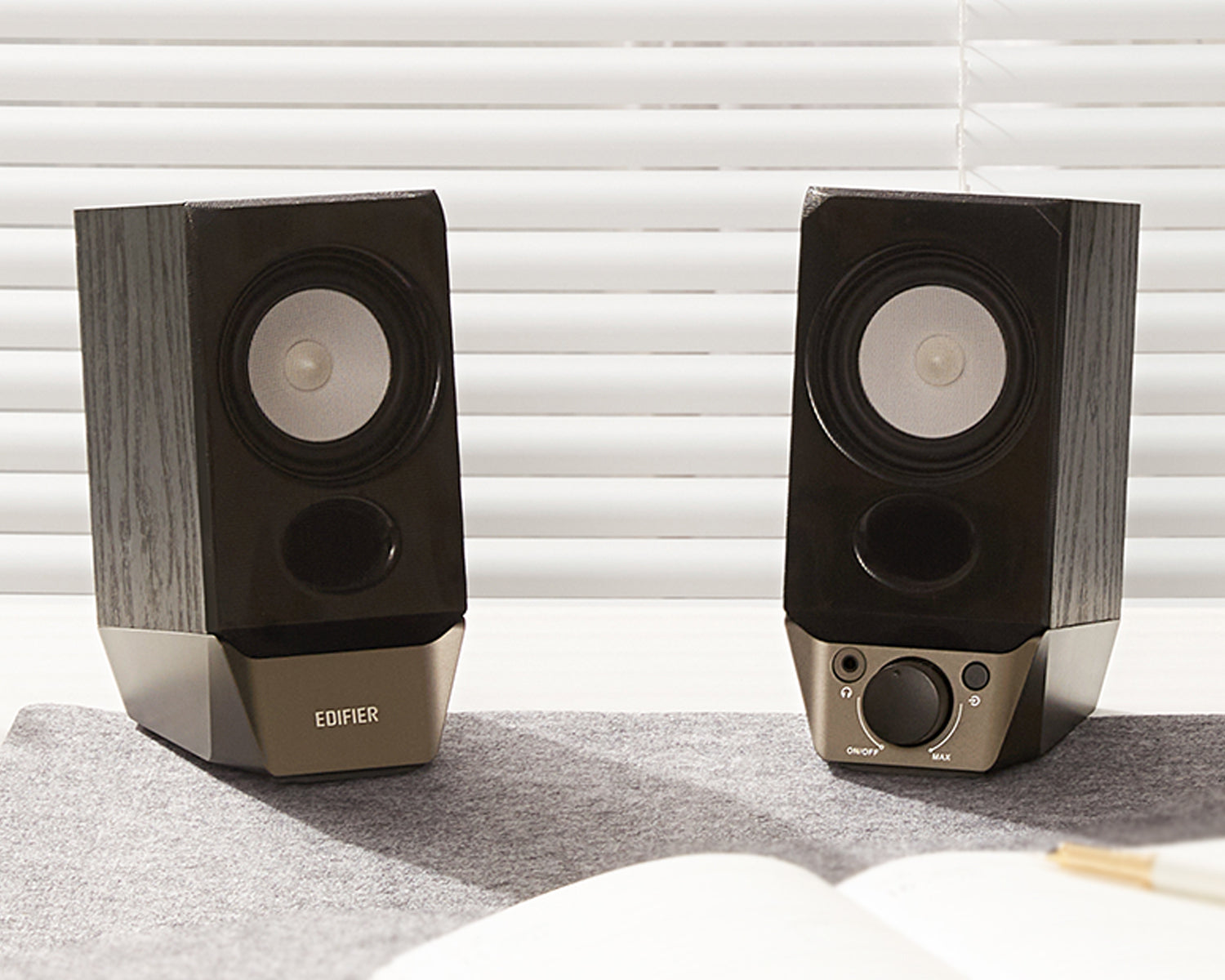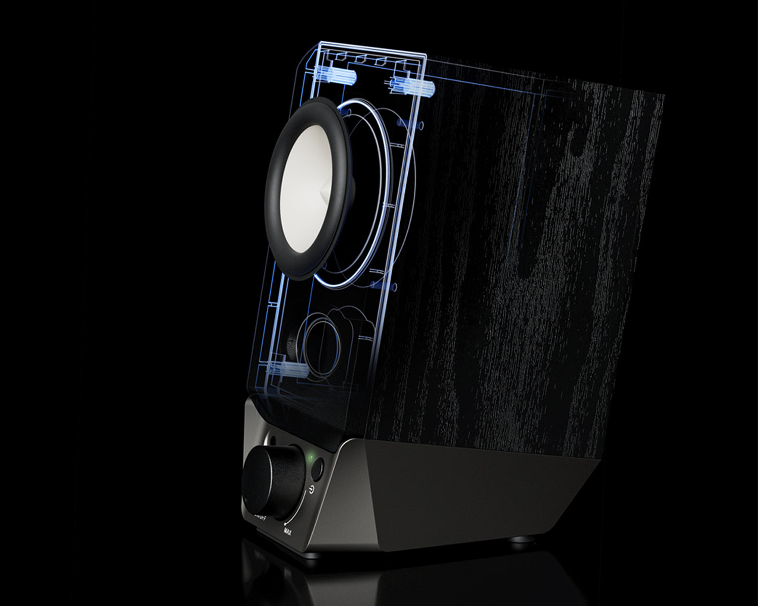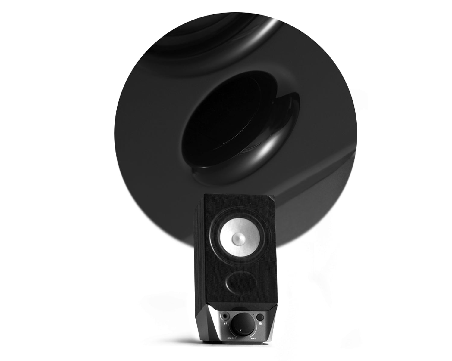ออกแบบมุมเอียงอย่างลงตัว เสียงจึงส่งตรงเข้าสู่ใบหูได้ชัดเจน ลดการกระจายเสียงไปยังพื้นที่รอบข้าง เหมาะสำหรับการวางบนโต๊ะทำงาน หรือการใช้งานในระยะใกล้