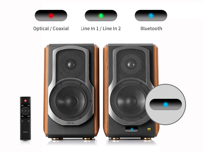 • 【ใช้งานง่าย ควบคุมสะดวก】: ปุ่มหมุนปรับเสียง เบส แหลม และเลือกอินพุตที่ด้านหน้า พร้อมรีโมตควบคุม และรองรับการตั้งค่าผ่านแอป EDIFIER ConneX