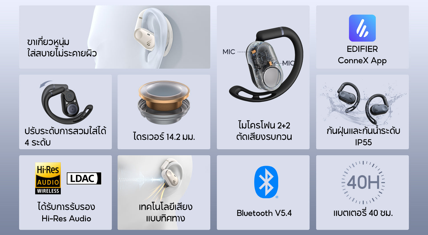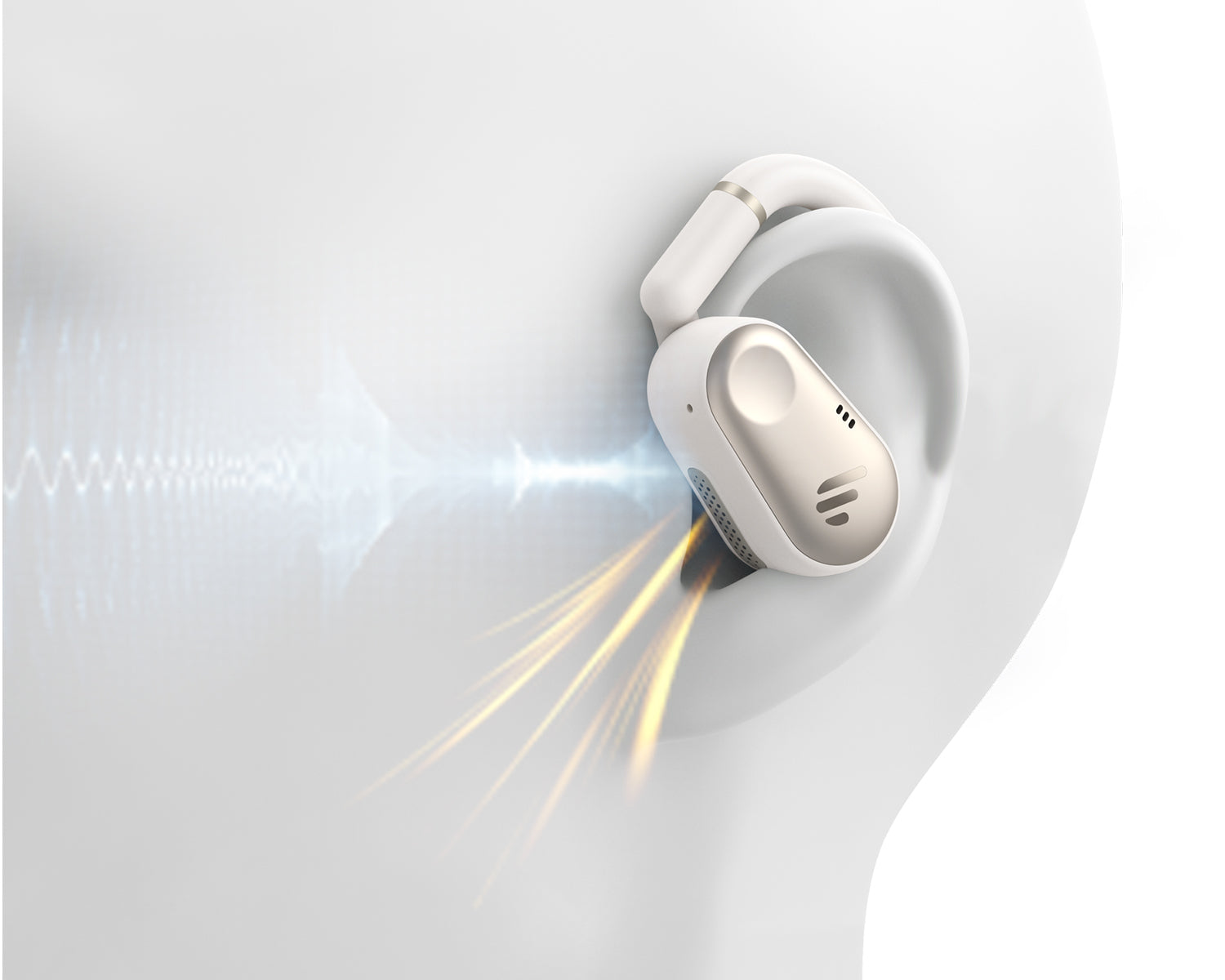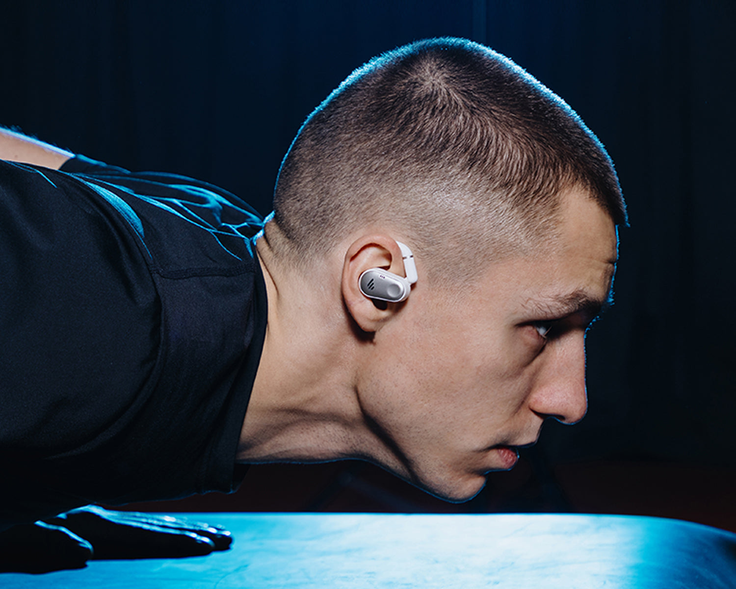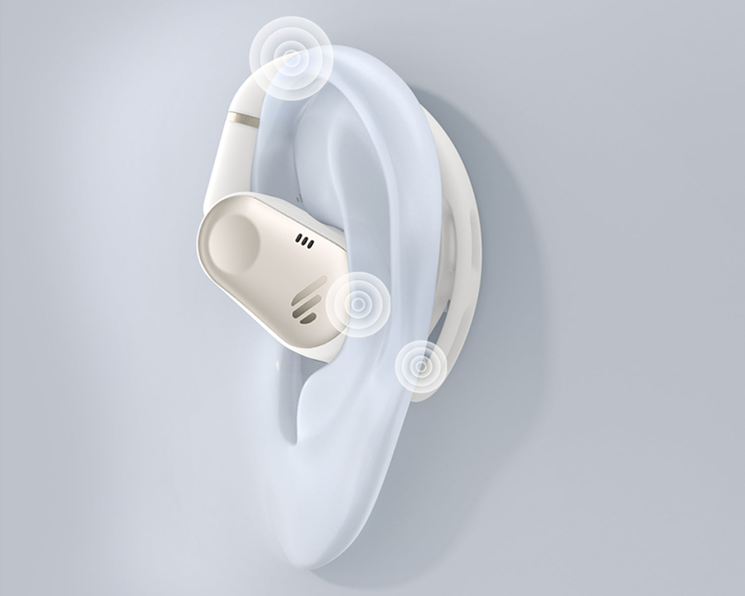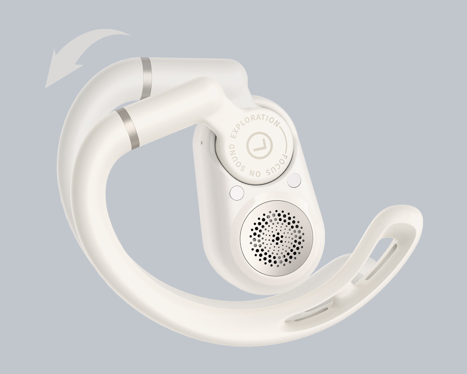 ดีไซน์ขาเกี่ยวหูแบบสามเหลี่ยม 3 มิติที่ยืดหยุ่น พร้อมข้อต่อปรับได้ ช่วยให้สวมใส่พอดีกับใบหู โครงสร้างแบบเปิดหูไม่รบกวนช่องหู ให้คุณฟังได้นานโดยไม่เมื่อยล้า และยังคงรับรู้เสียงรอบตัวได้อย่างเป็นธรรมชาติ