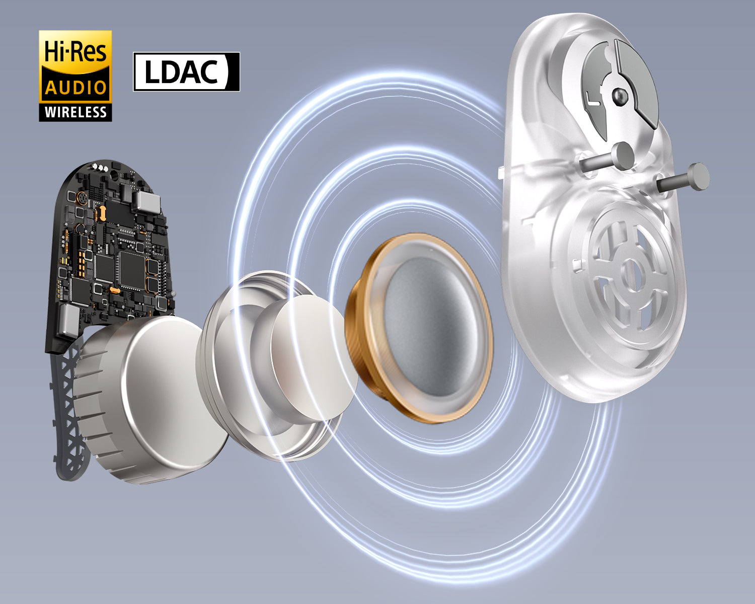 • 【เสียงทรงพลัง คมชัด】: ไดรเวอร์ขนาด 14.2 มม. ให้เสียงคมชัด มีพลังและมิติ พร้อมเทคโนโลยีเสียงทิศทางพิเศษ ลดเสียงรั่ว รองรับ Hi-Res Audio Wireless และ Codec คุณภาพสูง เช่น LDAC / AAC / SBC