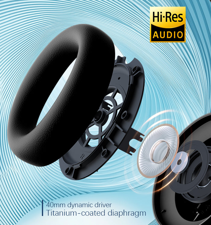 - 【เสียงคมชัดระดับ Hi-Res】: ไดรเวอร์ไดนามิกขนาด 40 มม. พร้อมไดอะแฟรมเคลือบไทเทเนียม ให้เสียงความละเอียดสูง รองรับ Hi-Res Audio เมื่อเชื่อมต่อผ่านสาย USB-C