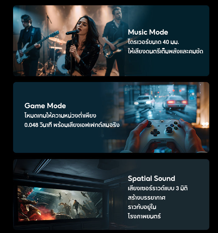 โหมดเกมให้ความหน่วงต่ำเพียง 0.048 วินาที พร้อมเสียงเอฟเฟกต์สมจริง