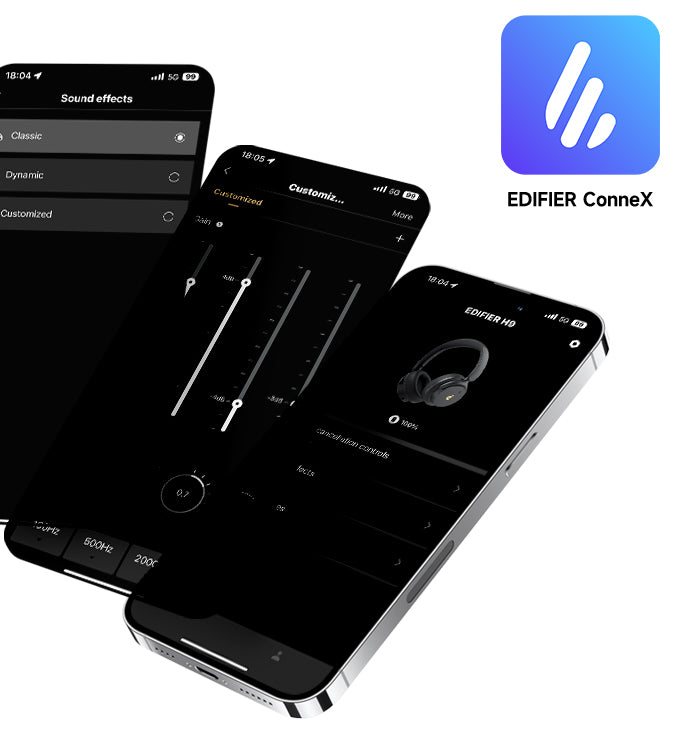- 【ปรับแต่งผ่านแอป EDIFIER ConneX】: รองรับการปรับค่า EQ ล่วงหน้า ตั้งค่าปุ่มควบคุม และฟังก์ชันอื่นๆ ได้ผ่านแอป Edifier ConneX