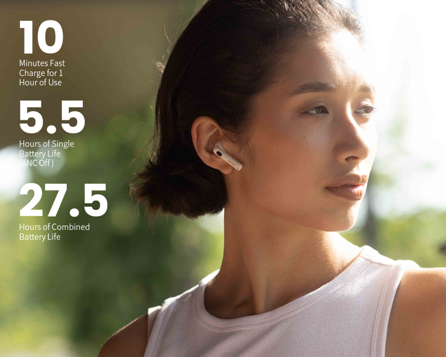 - 【แบตเตอรี่ใช้งานได้นาน】: ฟังเพลงได้นาน 3.5 ชั่วโมงเมื่อเปิด ANC และรวมสูงสุด 17.5 ชั่วโมงเมื่อใช้ร่วมกับเคสชาร์จ