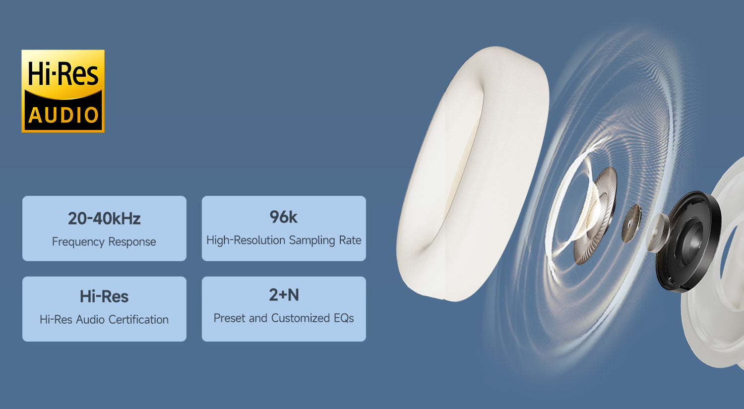 • [เสียงระดับ Hi-Res]: ไดร์ฟเวอร์ 40 มม. เคลือบทิตาเนียม ให้เสียงคุณภาพสูงผ่านการรับรอง Hi-Res Audio (แบบมีสาย USB-C) เบสหนักแน่น เสียงกลางชัดเจน