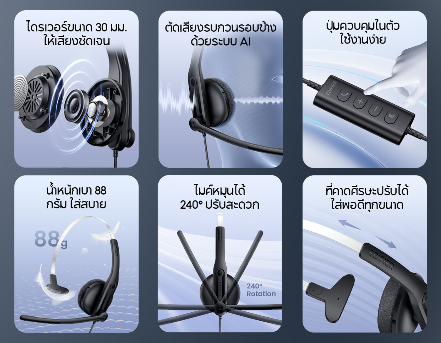น้ำหนักเบา พร้อมที่คาดศีรษะแบบโลหะที่ปรับได้ สวมใส่กระชับและมั่นคงตลอดการใช้งาน