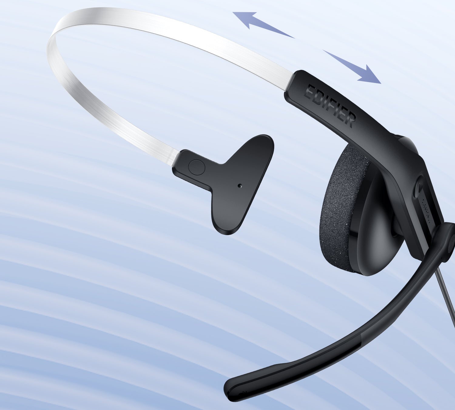 ปรับมุมไมโครโฟนได้อย่างยืดหยุ่น รองรับการใช้งานทั้งสองข้าง เพื่อความสะดวกในการสวมใส่