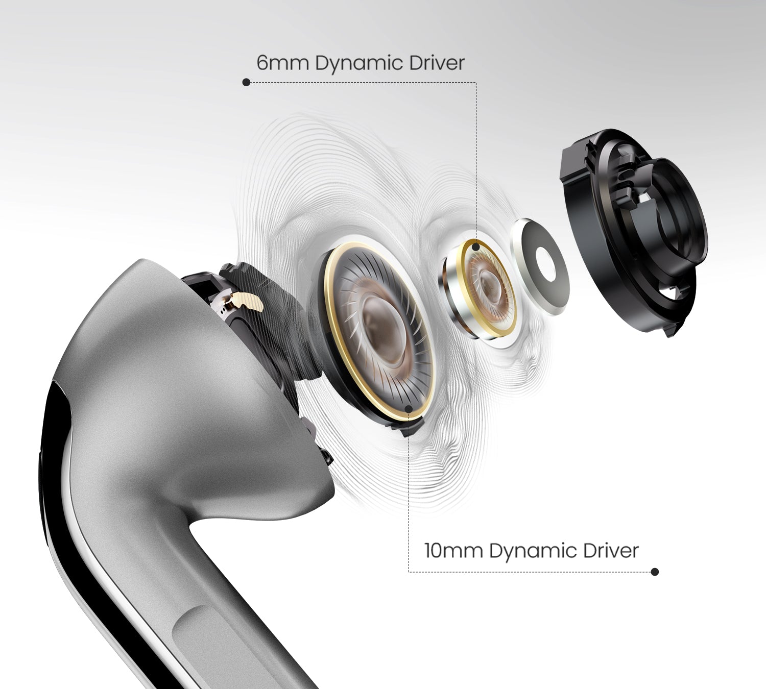 มีไดรเวอร์ทวีตเตอร์ขนาด 6 มม. และวูฟเฟอร์ขนาด 10 มม. ในการออกแบบโคแอกเซียล ให้เสียงที่สมดุลและมีความลึกในทุกย่านความถี่ เบสทรงพลัง กลางสดใส และเสียงแหลมใสสะอาดมารวมกันอย่างลงตัว