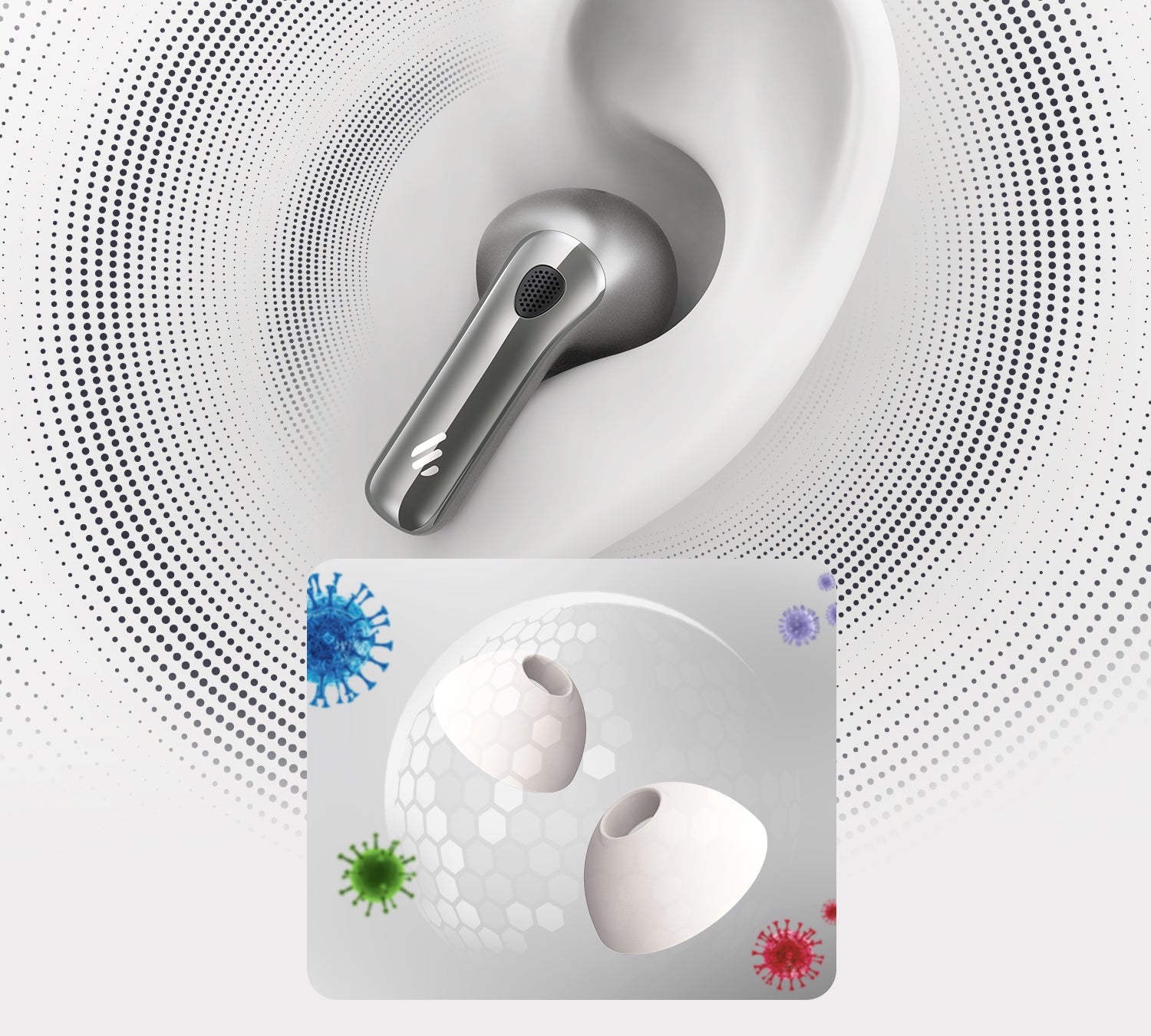 ตัวเครื่องน้ำหนักเบาและออกแบบตามหลักสรีรศาสตร์ พร้อมจุกหูที่นุ่มและป้องกันแบคทีเรีย ช่วยให้สวมใส่ได้อย่างมั่นคงและสบายโดยไม่มีความรู้สึกอึดอัดแม้ใช้งานตลอดทั้งวัน รวมความสะดวกสบาย สุขอนามัย และความพอดีที่สมบูรณ์แบบ