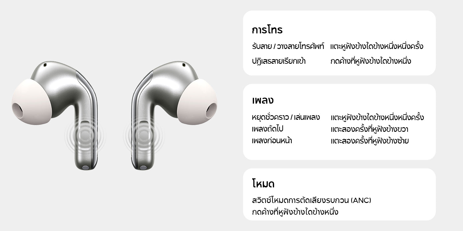 * การควบคุมหูฟังสามารถปรับแต่งได้ในแอปพลิเคชัน