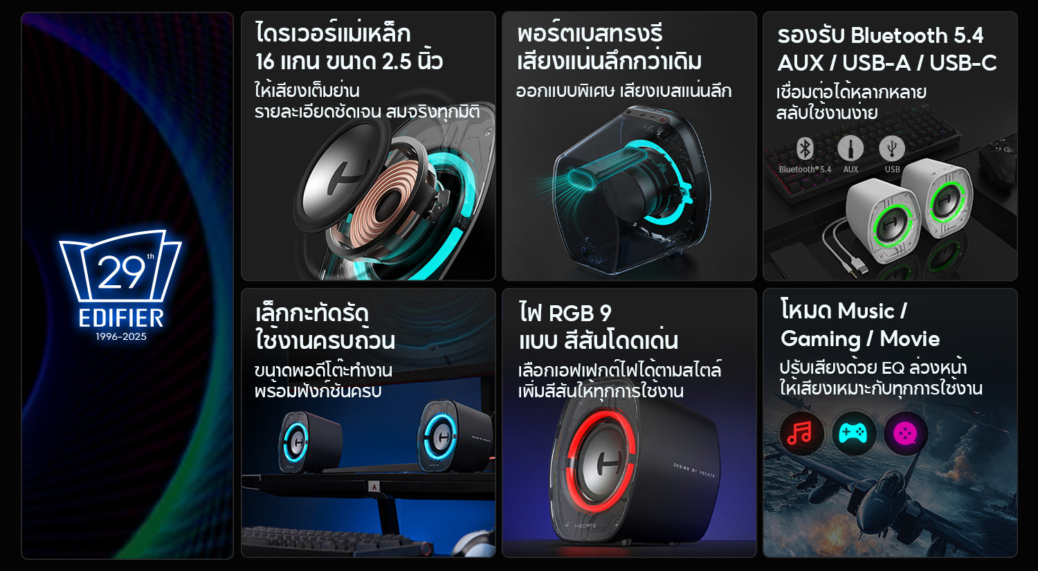【เสียงทรงพลัง คมชัดทุกย่าน】:ไดรเวอร์ขนาด 2.5 นิ้ว แบบฟูลเรนจ์ ให้เสียงครบทุกย่าน พร้อมรายละเอียดคมชัด ตอบโจทย์ทั้งการฟังเพลง เล่นเกม หรือดูหนัง