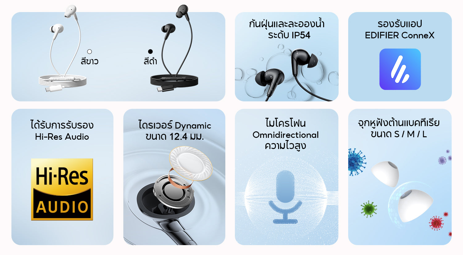 • 【จุกหูฟังต้านแบคทีเรีย · มาตรฐาน IP54】:มาพร้อมจุกหูฟังต้านแบคทีเรีย ขนาด S/M/L สวมใส่กระชับสบาย และป้องกันฝุ่นกับละอองน้ำระดับ IP54 สำหรับการใช้งานประจำวัน