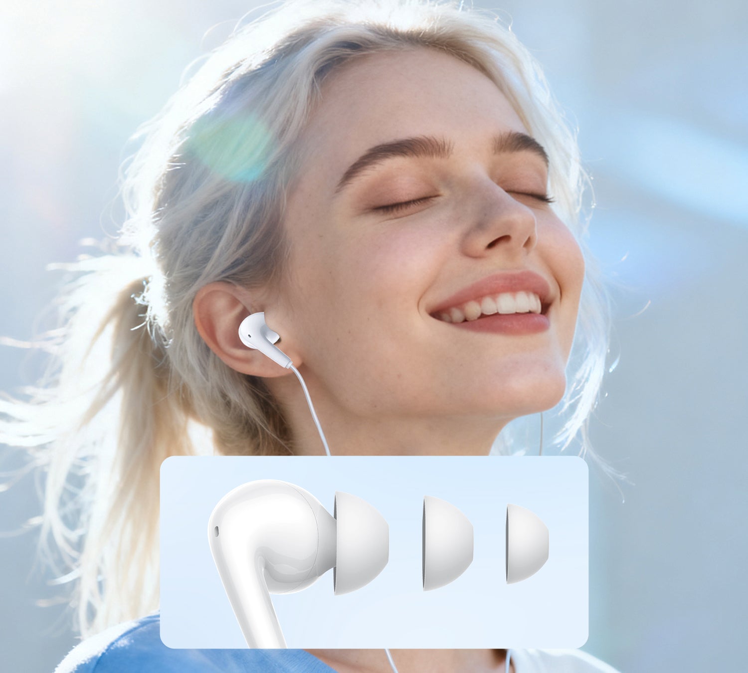 มาพร้อมจุกหูฟังต้านแบคทีเรีย ขนาด S/M/L กระชับพอดี สวมใส่สบาย เหมาะสำหรับการใช้งานต่อเนื่อง และช่วยเพิ่มประสิทธิภาพในการแยกเสียงรบกวน