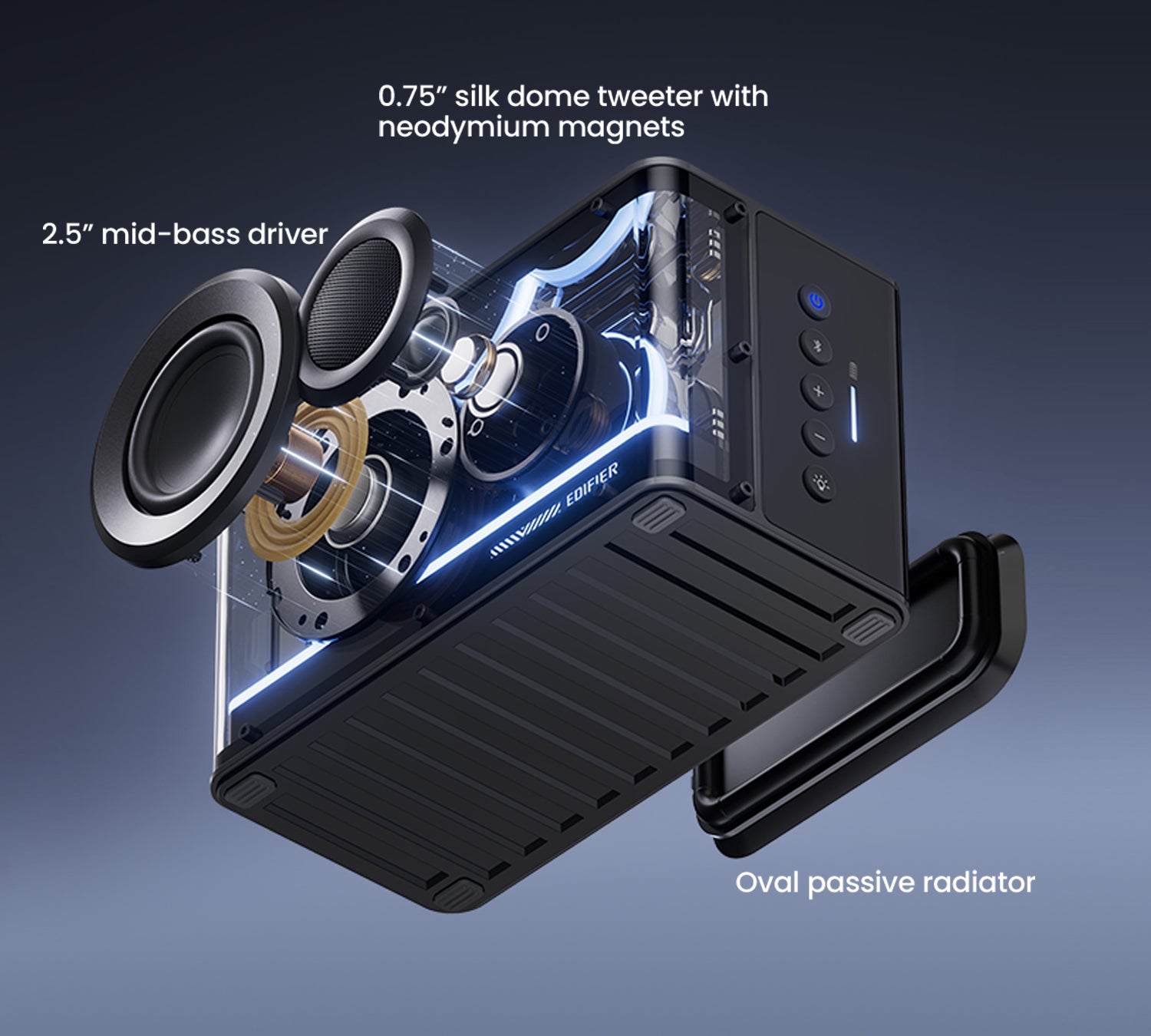 - 【โครงสร้างไดรเวอร์คู่ เสียงครบทุกย่าน】: ประกอบด้วยไดรเวอร์เสียงกลาง–ต่ำขนาด 2.5" และทวีตเตอร์ผ้าไหม 0.75" พร้อม passive radiator ให้เสียงทรงพลังและมีมิติ