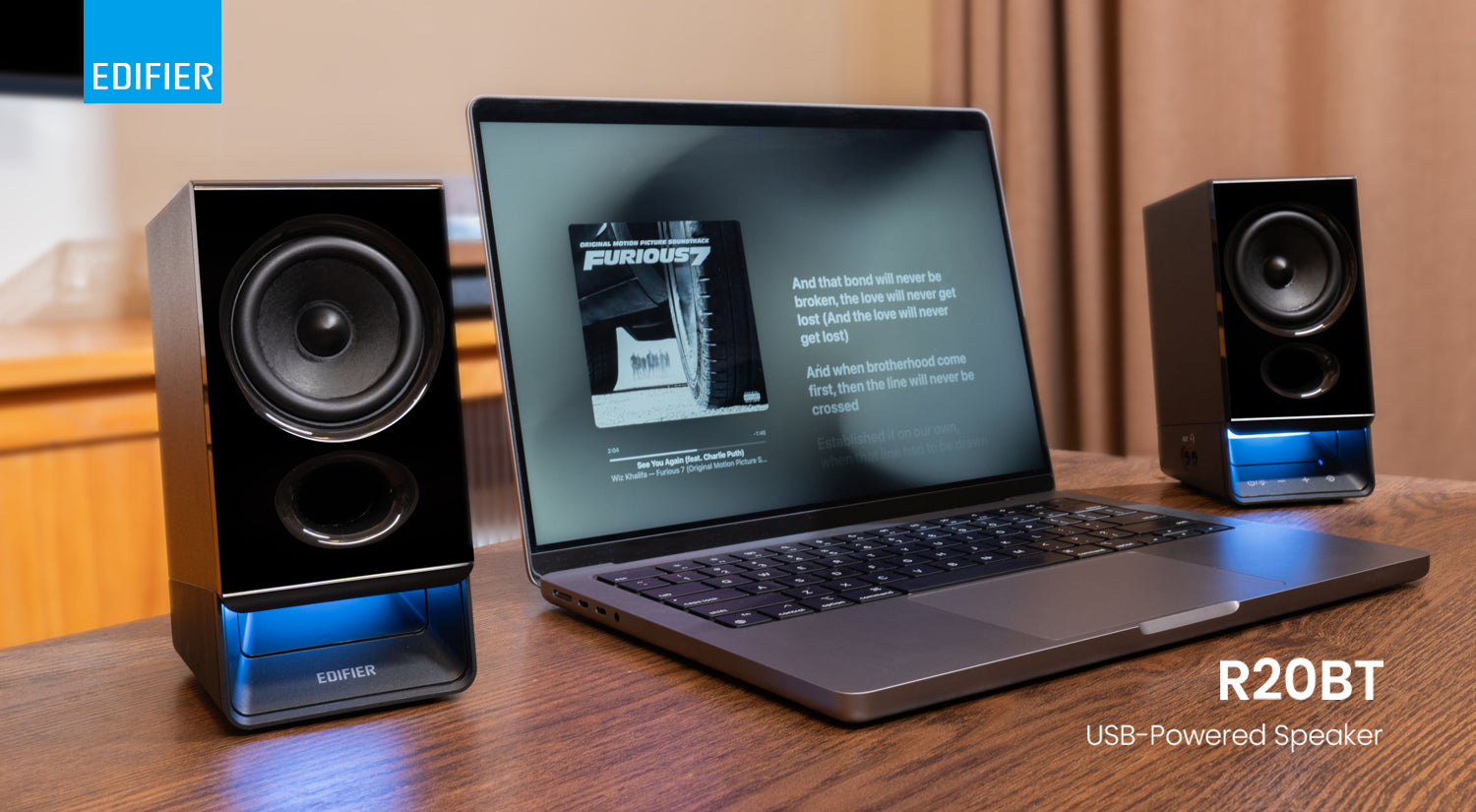 สาย USB ที่ติดมากับลำโพงสามารถส่งทั้งไฟและสัญญาณเสียงจากคอมพิวเตอร์ เพียงเสียบสาย USB ก็พร้อมใช้งานทันทีโดยไม่ต้องตั้งค่าเพิ่มเติม