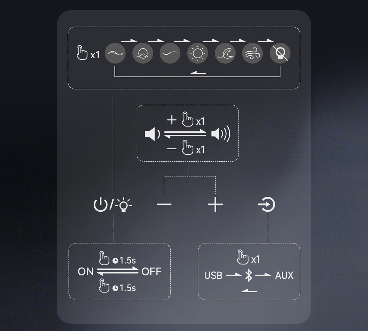 - เปิด / ปิดเครื่อง และควบคุมเอฟเฟกต์แสง