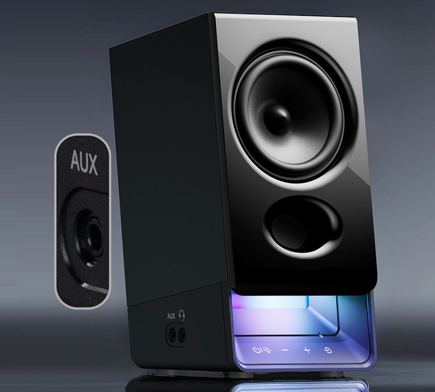 พอร์ต AUX ที่ติดตั้งบนตัวลำโพงช่วยให้เชื่อมต่อกับคอมพิวเตอร์ แท็บเล็ต หรืออุปกรณ์อื่น ๆ ที่มีเอาต์พุต AUX หรือ RCA ได้อย่างสะดวก