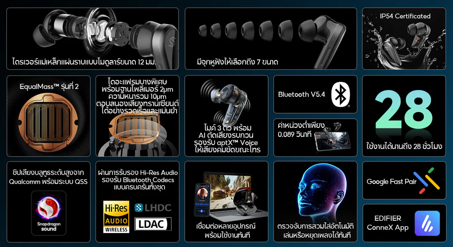 - 【รองรับแอป EDIFIER ConneX】:ปรับ EQ ระบบสัมผัส และโหมดเสียงได้ตามสไตล์ส่วนตัวผ่านแอป