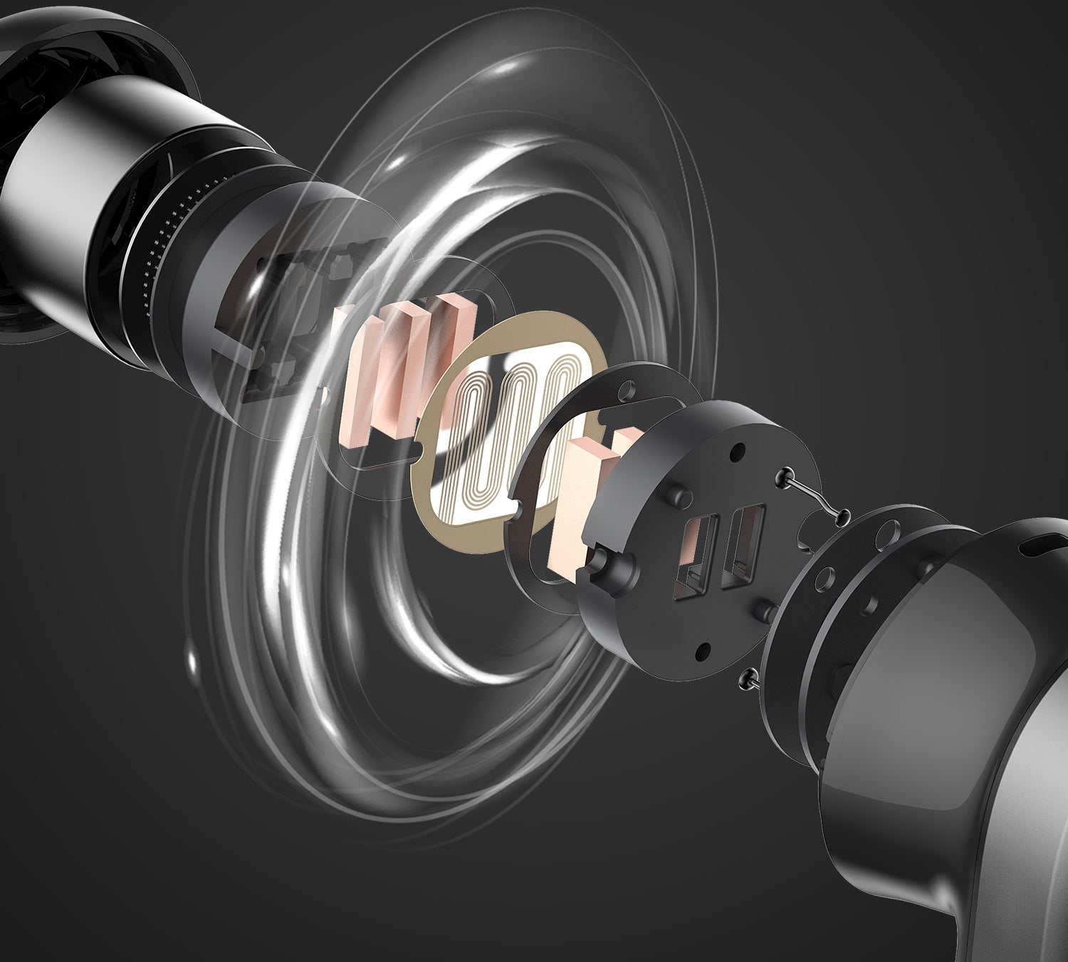 ประกอบด้วยแผ่นไดอะแฟรม แม่เหล็กแบบ Push-pull และวัสดุดูดซับเสียง ภายในยูนิตขนาดเล็ก เพื่อให้ไดรเวอร์ทุกชิ้นมีประสิทธิภาพสม่ำเสมอ และสามารถใช้งานร่วมกับระบบ Active Noise Cancellation ได้อย่างมีประสิทธิภาพ