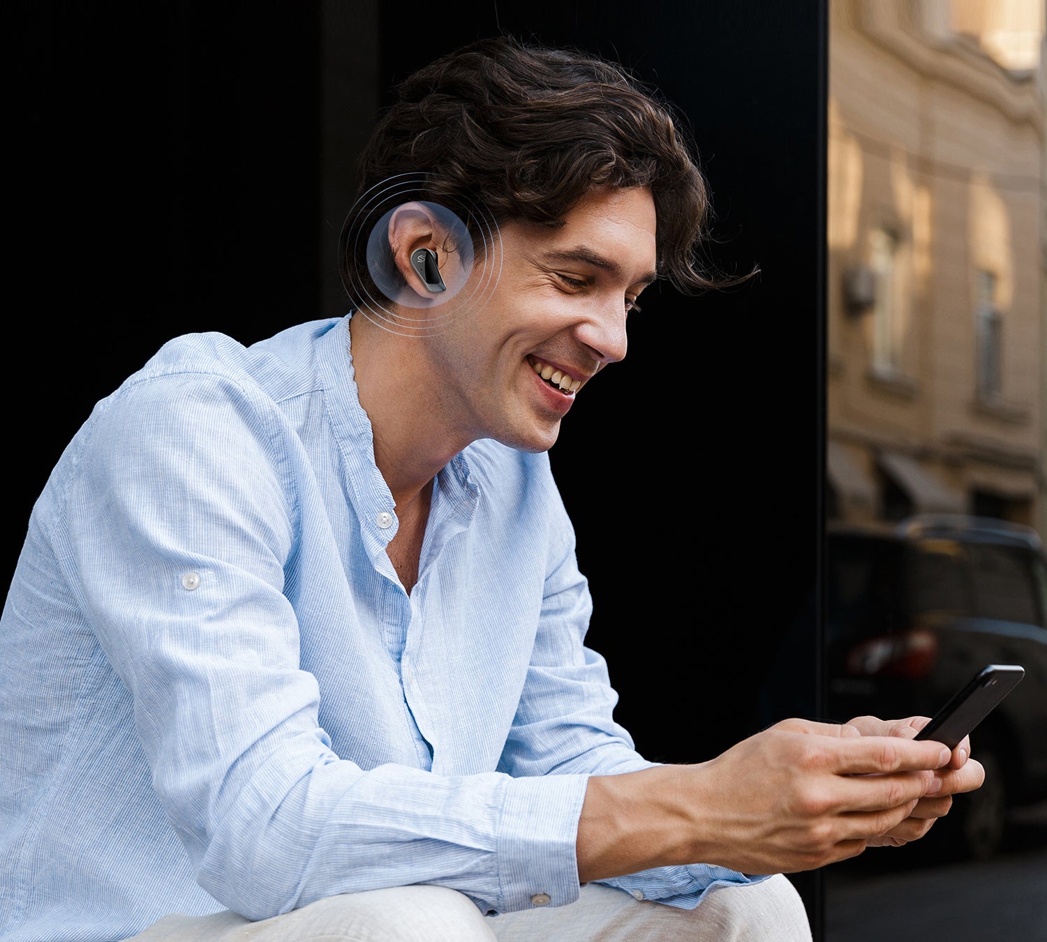 หูฟังแต่ละข้างมีไมโครโฟนในตัวที่ไวต่อเสียงจำนวน 3 ตัว (รวมทั้งหมด 6 ตัว) พร้อมเทคโนโลยี Qualcomm® aptX™ Voice ช่วยให้สามารถโทรแบบแฮนด์ฟรีได้อย่างชัดเจนแม้อยู่ในสภาพแวดล้อมที่มีเสียงดัง