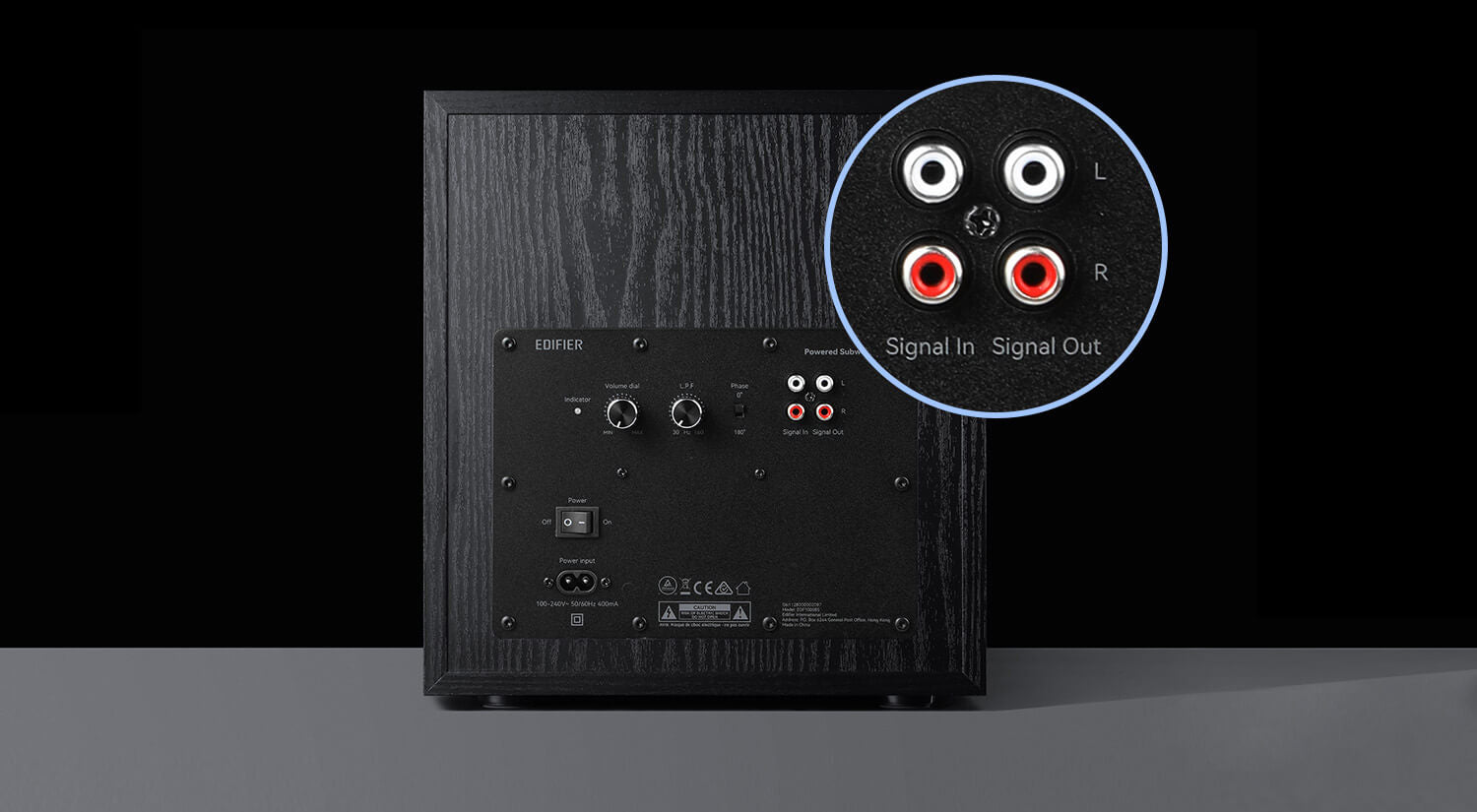 มาพร้อมพอร์ต Signal In/Out ที่รองรับลำโพงตั้งโต๊ะ ลำโพงวางชั้น หรือชุดโฮมเธียเตอร์