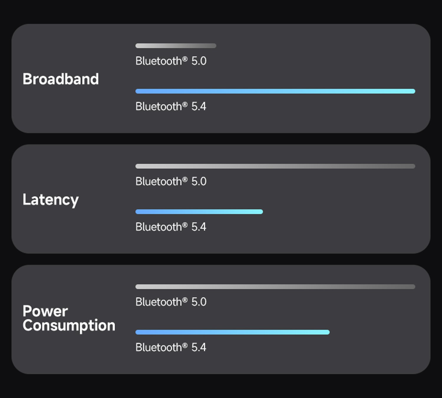 Bluetooth® 5.4 พัฒนาเหนือกว่า Bluetooth® 5.0 ทั้งด้านแบนด์วิดท์ ความหน่วงต่ำ และการประหยัดพลังงาน ให้คุณเชื่อมต่อได้รวดเร็วกว่า ใช้งานได้ลื่นไหล และยาวนานยิ่งขึ้น ไม่ว่าจะฟังเพลง เล่นเกม หรือรับสาย