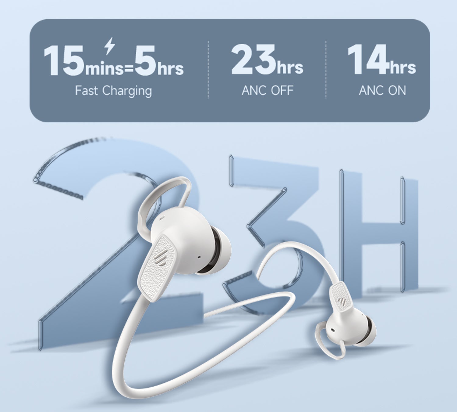 เพลิดเพลินกับการฟังต่อเนื่องได้นานสูงสุด 23 ชั่วโมงต่อการชาร์จหนึ่งครั้ง และหากต้องการชาร์จเร่งด่วน เพียง 15 นาที ก็ใช้งานได้นานถึง 5 ชั่วโมง เหมาะสำหรับการเดินทางหรือใช้งานระหว่างวัน