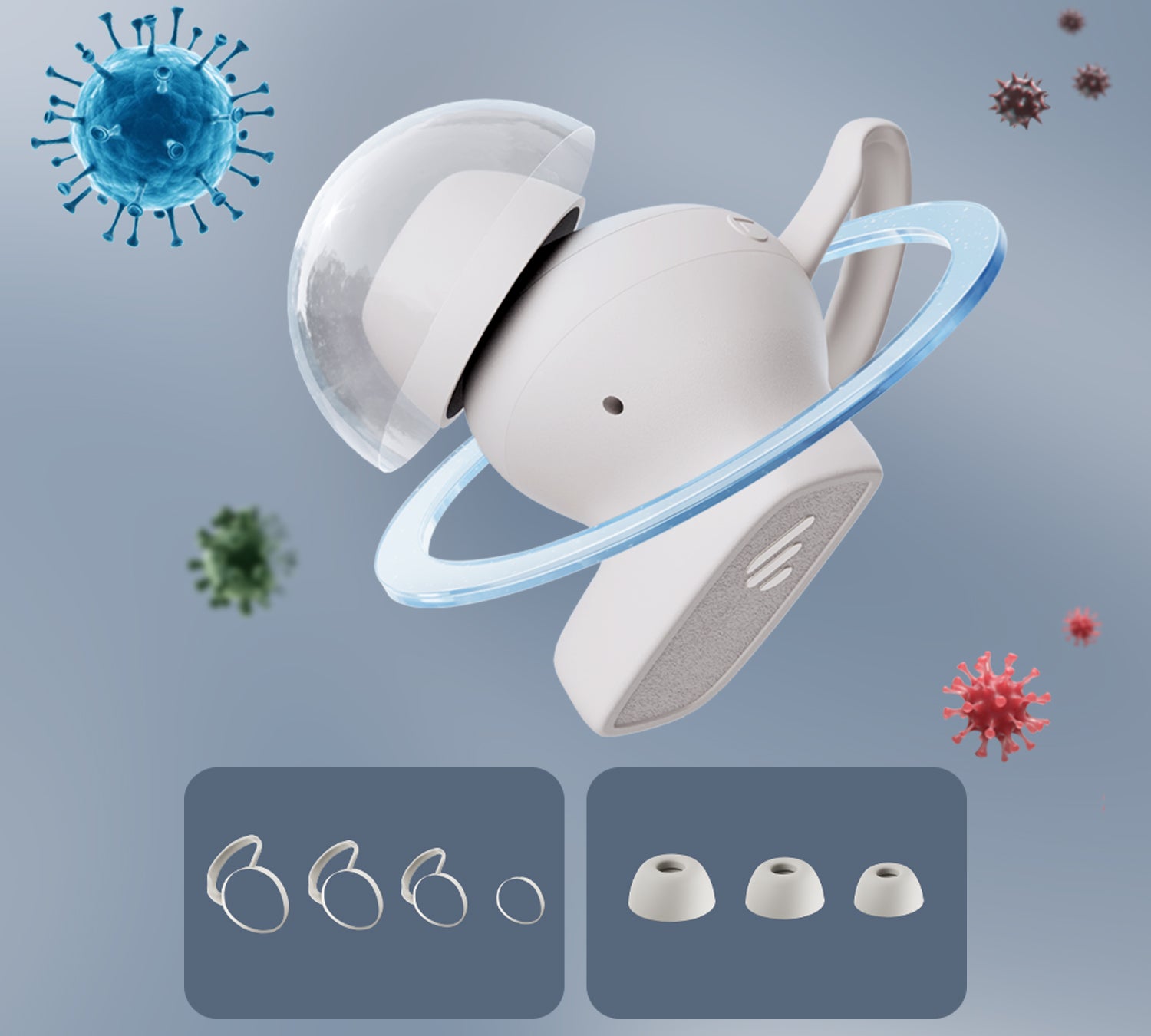 มาพร้อมจุกหูฟังและปีกหูแบบต้านแบคทีเรีย ช่วยดูแลสุขภาพหู และมีหลายขนาดให้เลือก ใส่ได้พอดีทั้งกระชับและสบาย