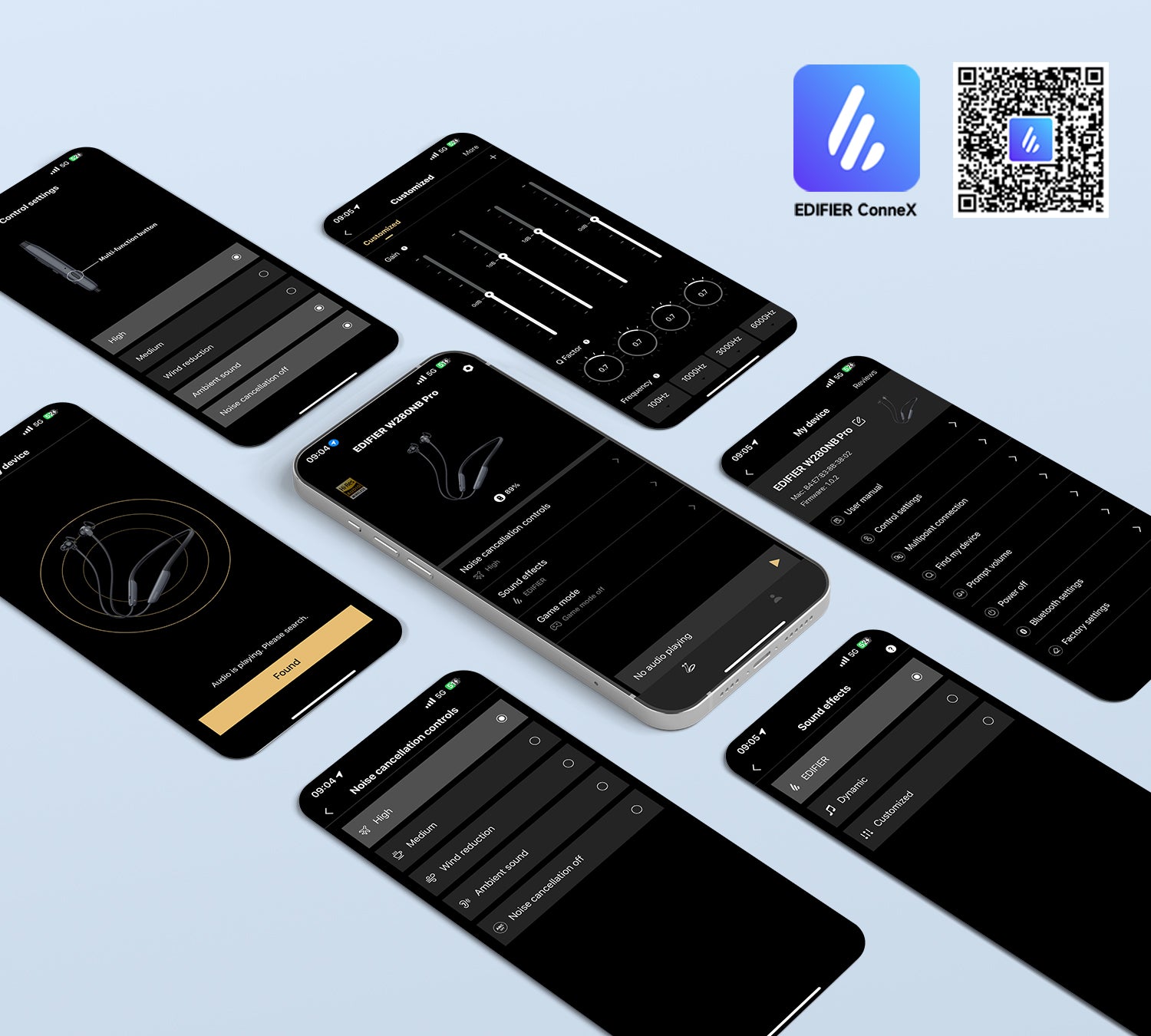ควบคุมหูฟังได้อย่างง่ายดายผ่านแอป EDIFIER ConneX ไม่ว่าจะเปลี่ยนชื่ออุปกรณ์ ปรับระดับ ANC ค้นหาหูฟังที่หาย หรือปรับแต่งเสียงด้วย EQ ที่ตั้งไว้หรือแบบกำหนดเอง