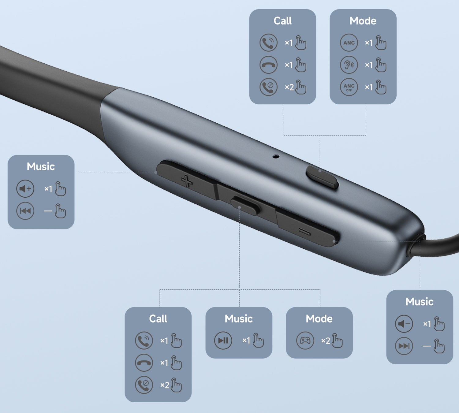 ควบคุมเพลง การโทร เสียง และโหมดต่าง ๆ ได้ง่ายด้วยปุ่มกดบนสายคล้องคอ
