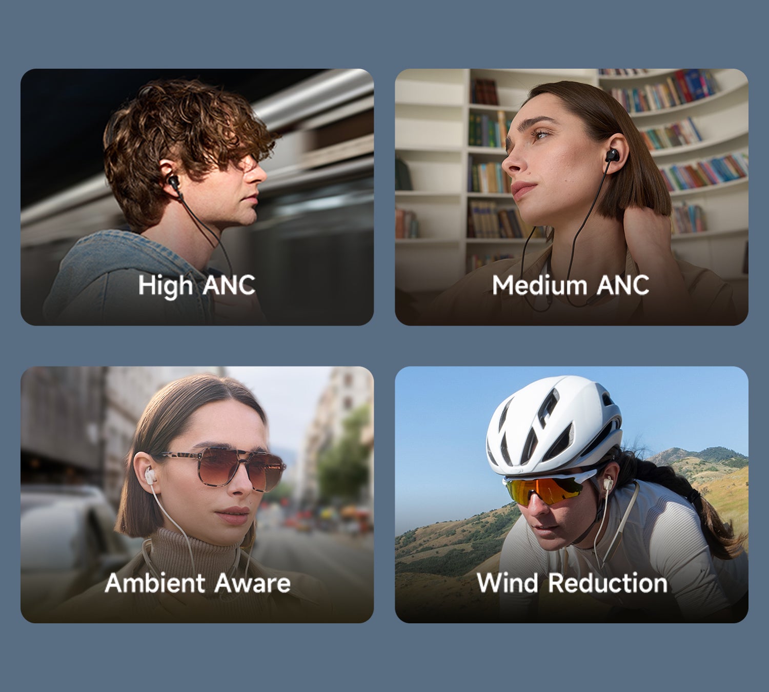 W280NB Pro มีโหมดตัดเสียงให้เลือก 4 แบบ ได้แก่ High ANC, Medium ANC, Ambient Aware และ Wind Reduction เหมาะกับทุกสถานการณ์ไม่ว่าจะเดินทาง ทำงาน หรือเล่นกีฬา ให้คุณได้ยินชัดทุกที่ทุกเวลา