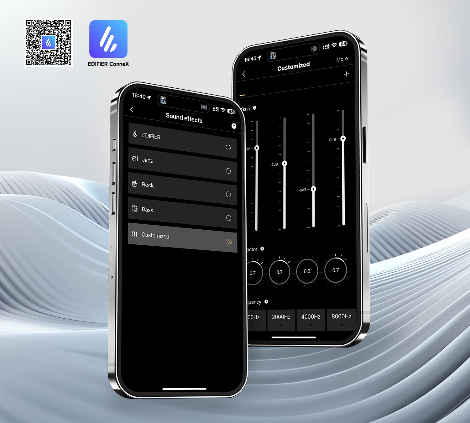 เลือกใช้ EQ แบบตั้งค่าล่วงหน้าหลากหลายรูปแบบ เช่น EDIFIER, แจ๊ส, ร็อก หรือเน้นเบส และยังสามารถปรับแต่งเสียงแบบละเอียดเพิ่มเติมได้ผ่านแอป เพื่อให้ได้เสียงที่ตรงใจคุณที่สุด