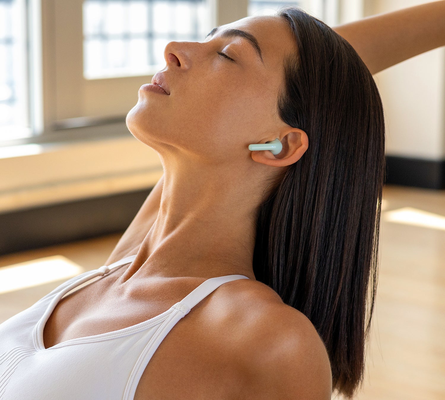 ตัวหูฟังแบบครึ่งอินเอียร์ ออกแบบให้สวมใส่พอดีกับหู ลดแรงกดทับบริเวณรูหู ไม่หลุดง่าย ใส่สบายแม้ใช้งานต่อเนื่องหลายชั่วโมง
