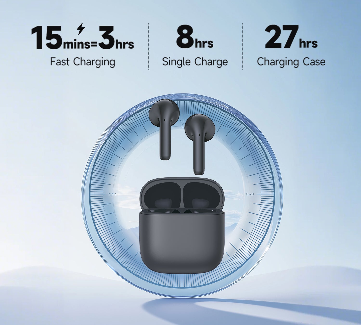 【ใช้งานได้นานสูงสุด 35 ชั่วโมง พร้อมชาร์จเร็ว】:เล่นต่อเนื่องได้สูงสุด 8 ชั่วโมง และเพิ่มอีก 27 ชั่วโมงจากเคสชาร์จ ชาร์จเพียง 15 นาที ฟังเพลงได้นานถึง 3 ชั่วโมง