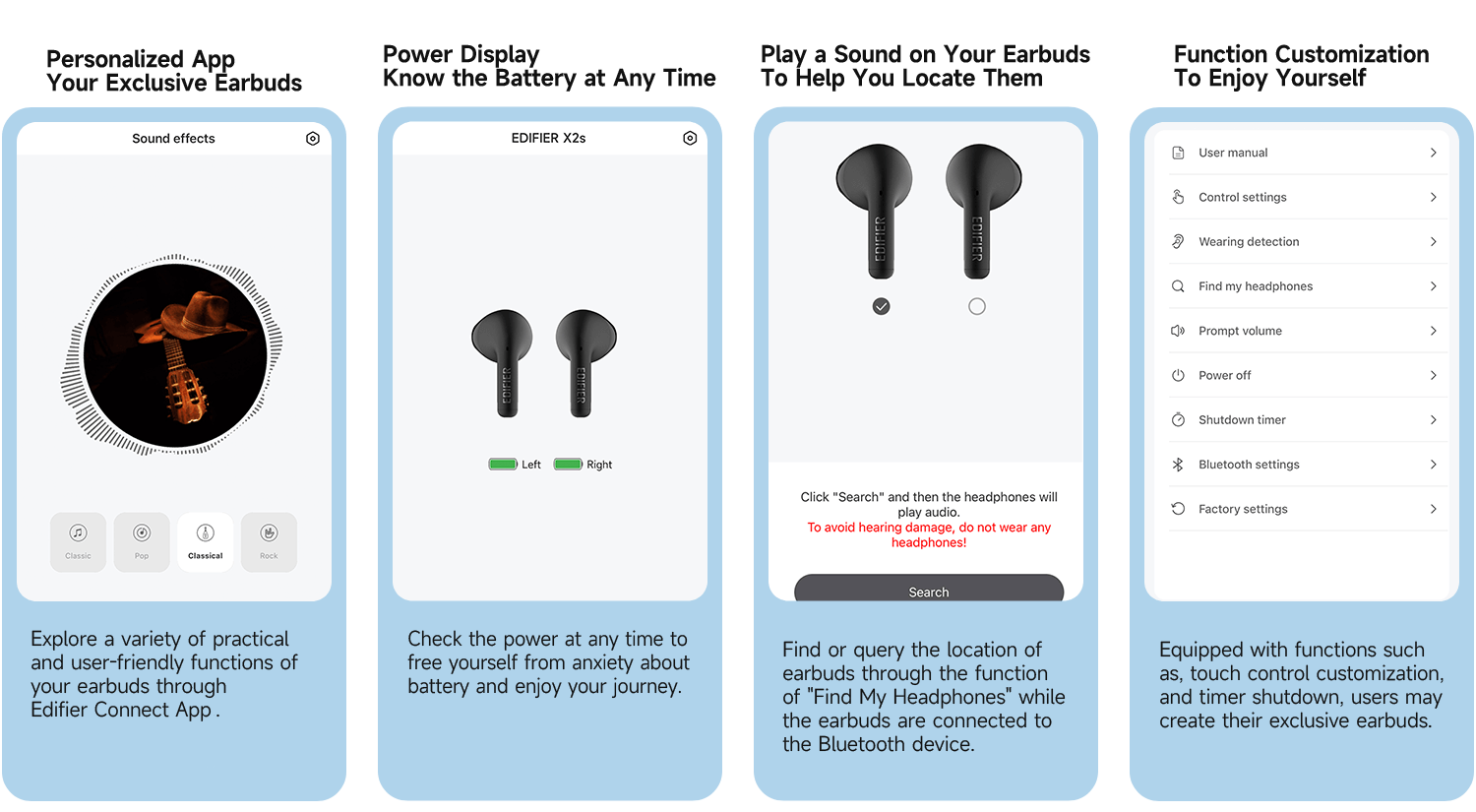 - [แอป Edifier Connect]: ปรับแต่ง EQ และการควบคุมต่างๆ ผ่านแอปพลิเคชันได้ตามต้องการ